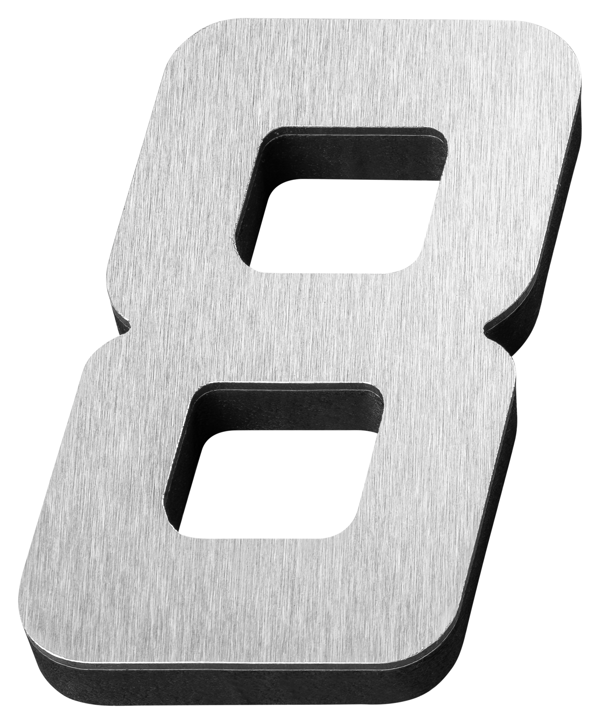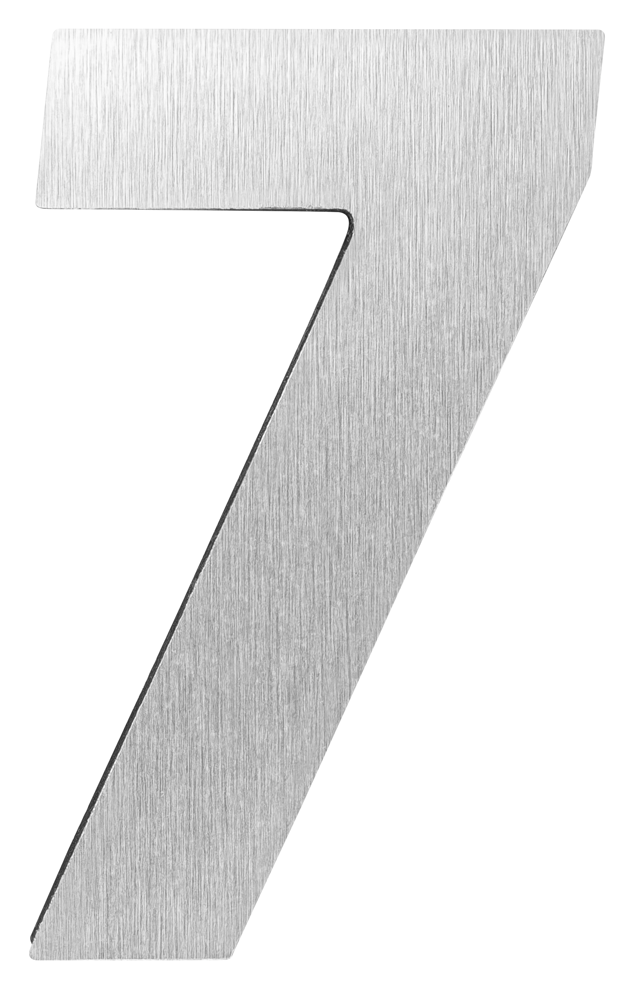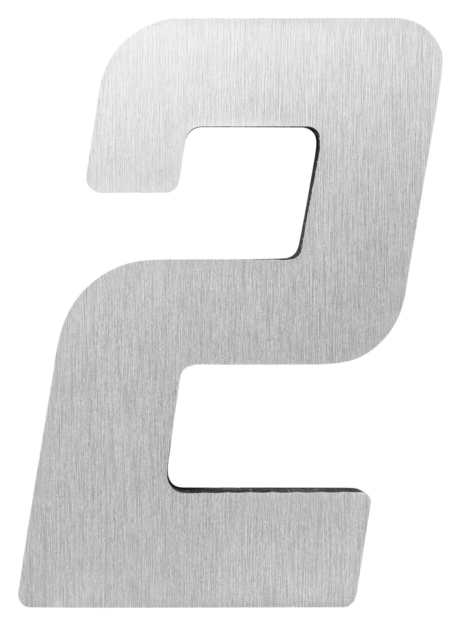 Residential number made of aluminum composite material (ACM) for indoor or outdoor use. It features transparent double-sided adhesive tape for wall mounting, eliminating the need for drilling or using tools during installation.