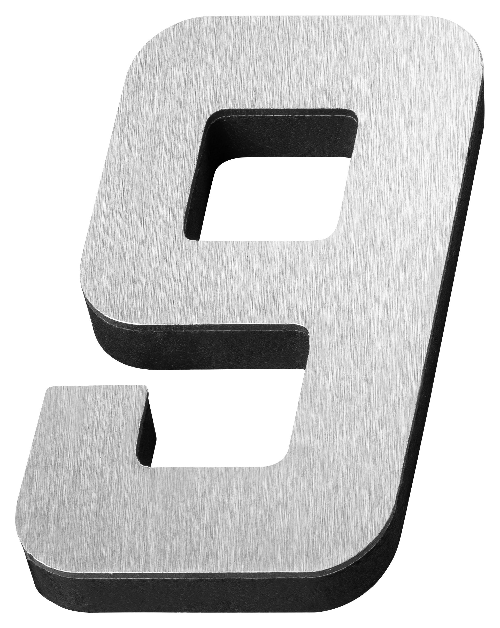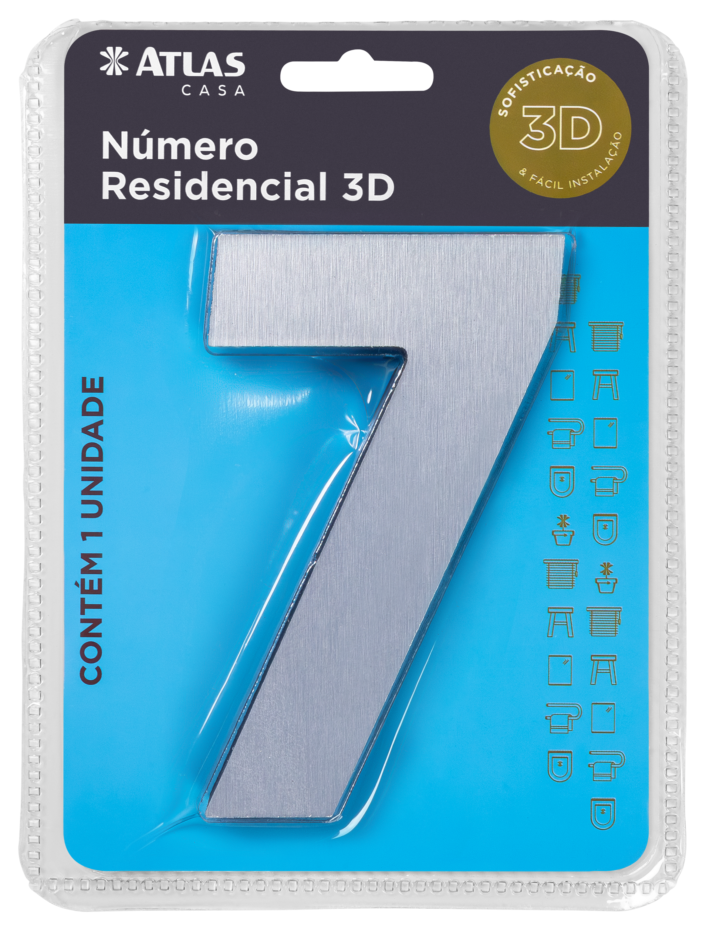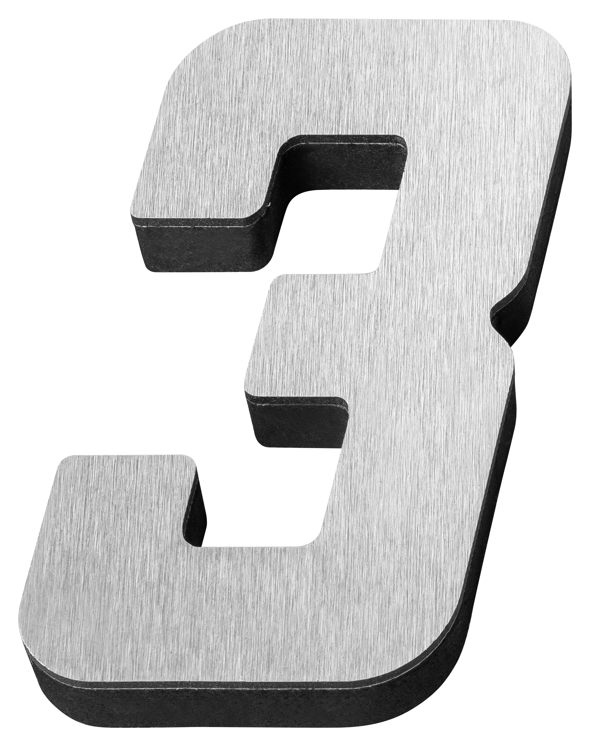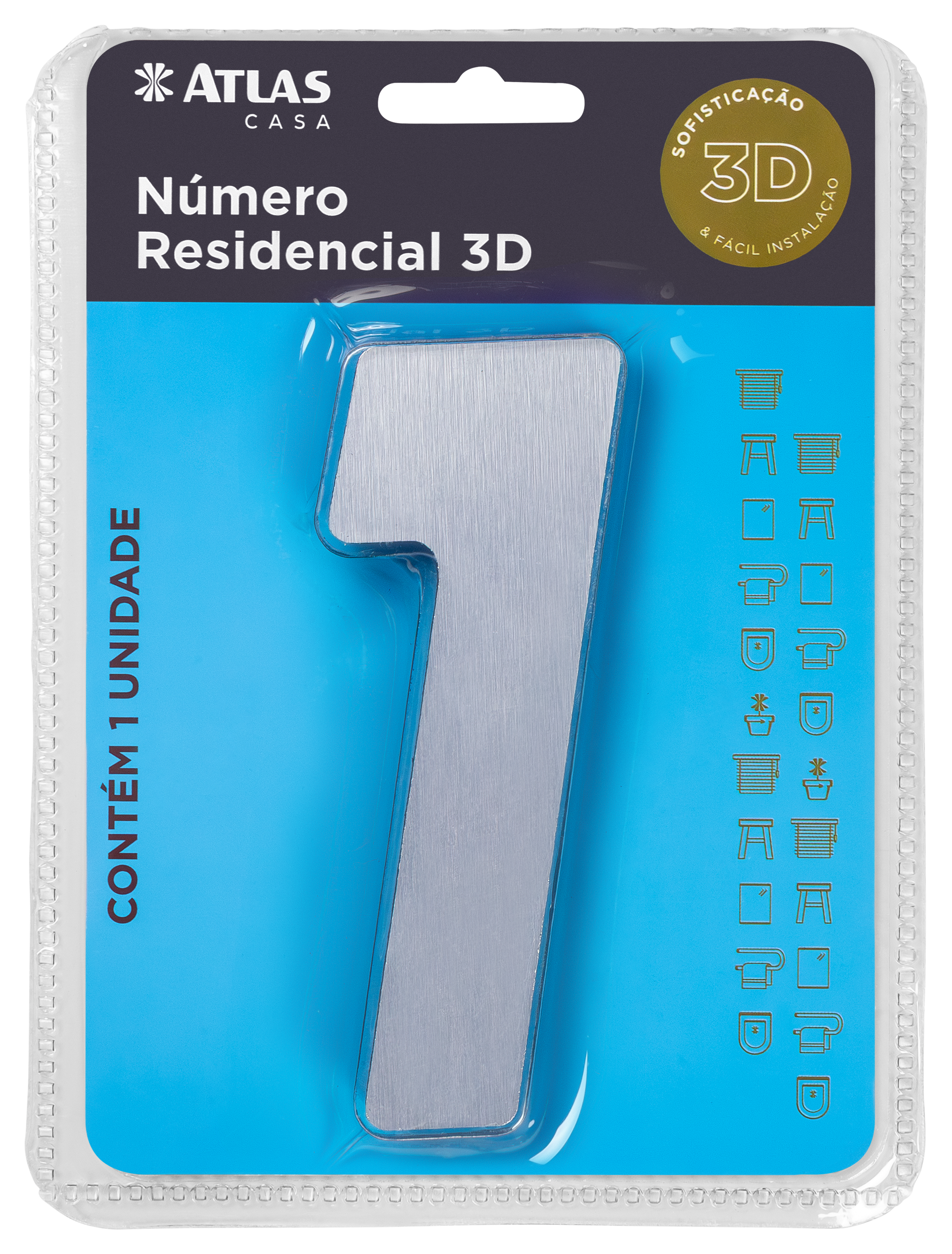 Residential number made of aluminum composite material (ACM) for indoor or outdoor use. It features transparent double-sided adhesive tape for wall mounting, eliminating the need for drilling or using tools during installation.