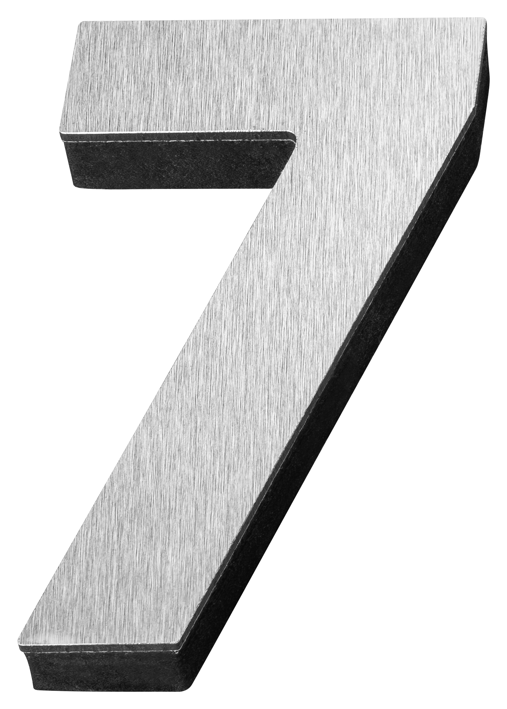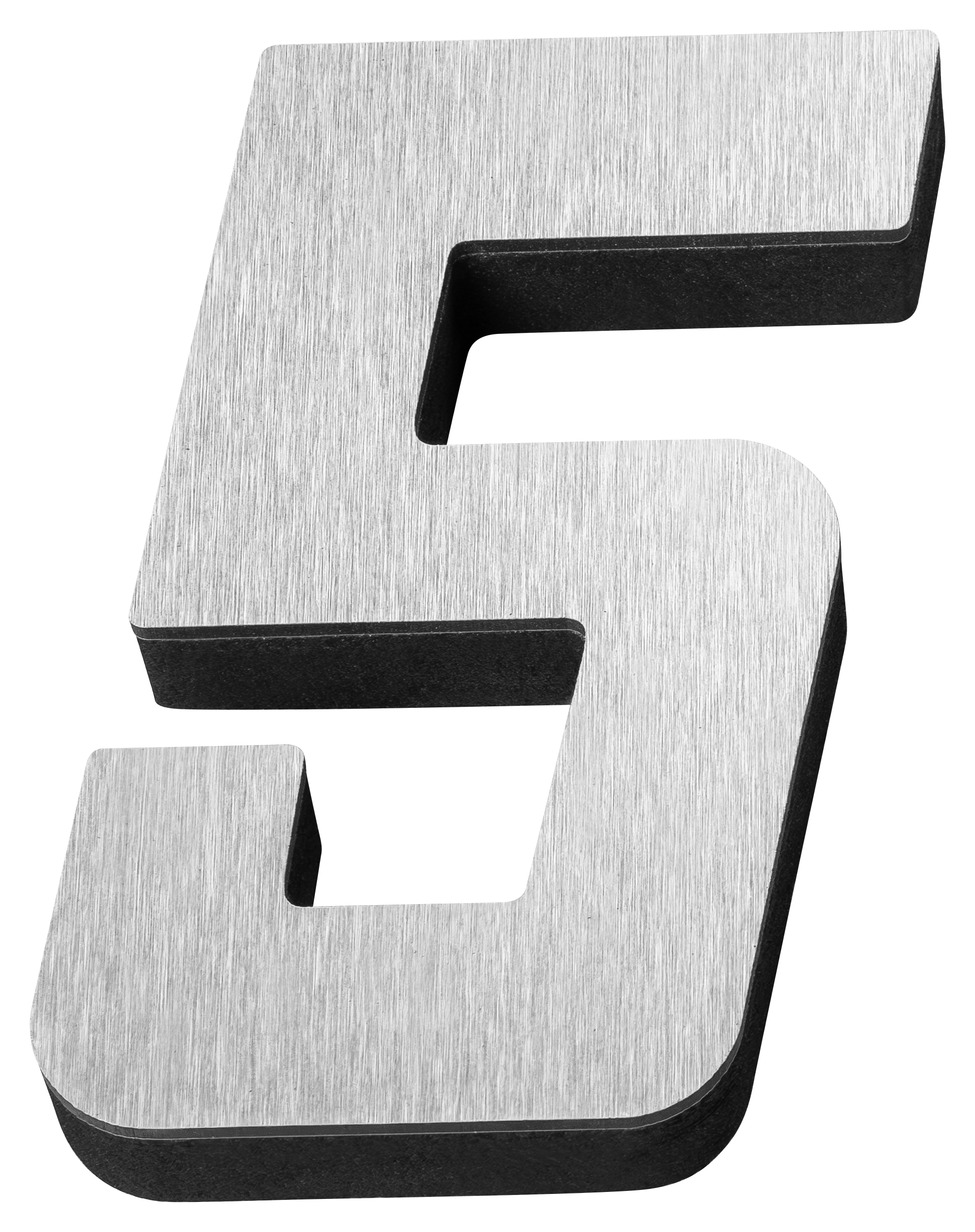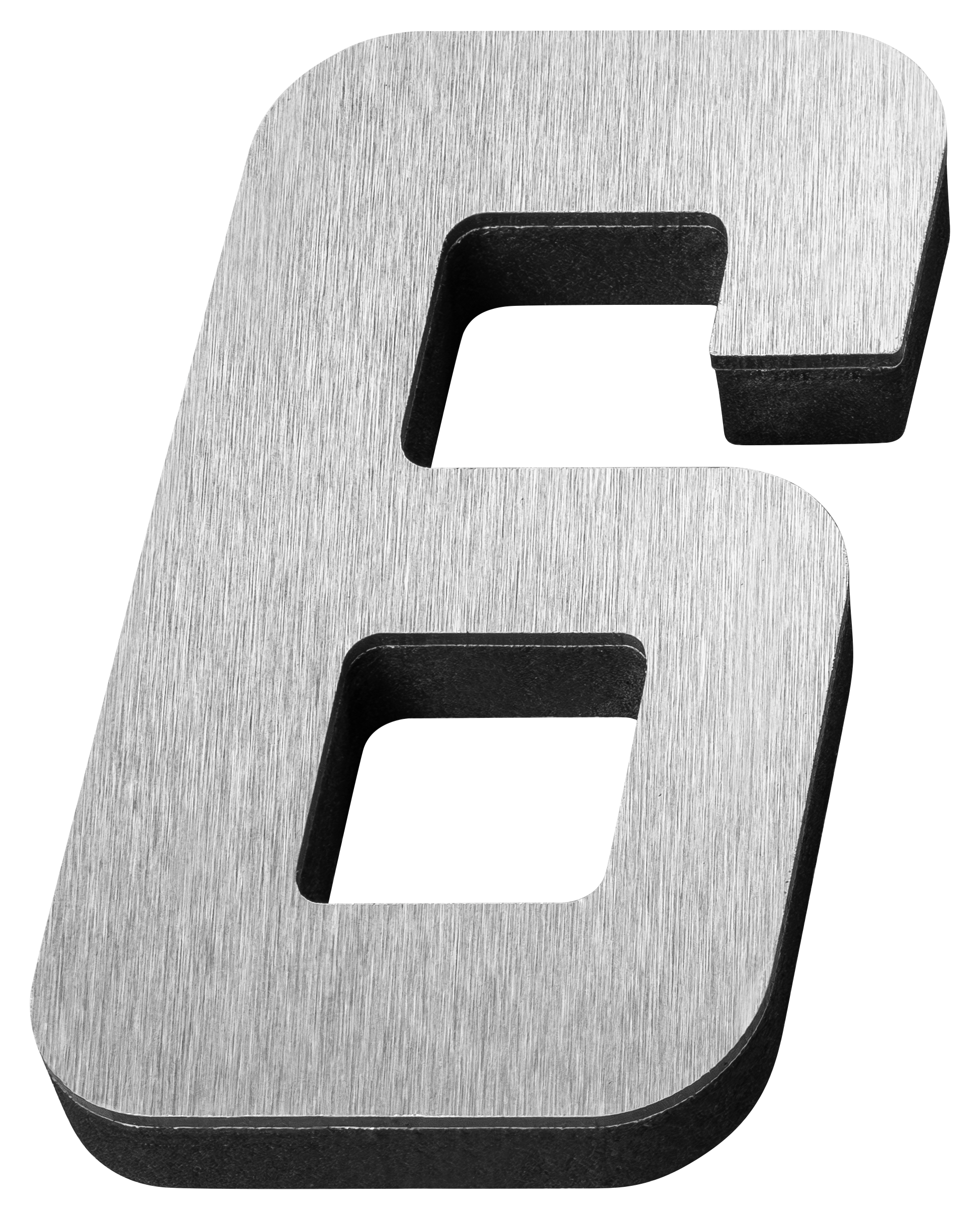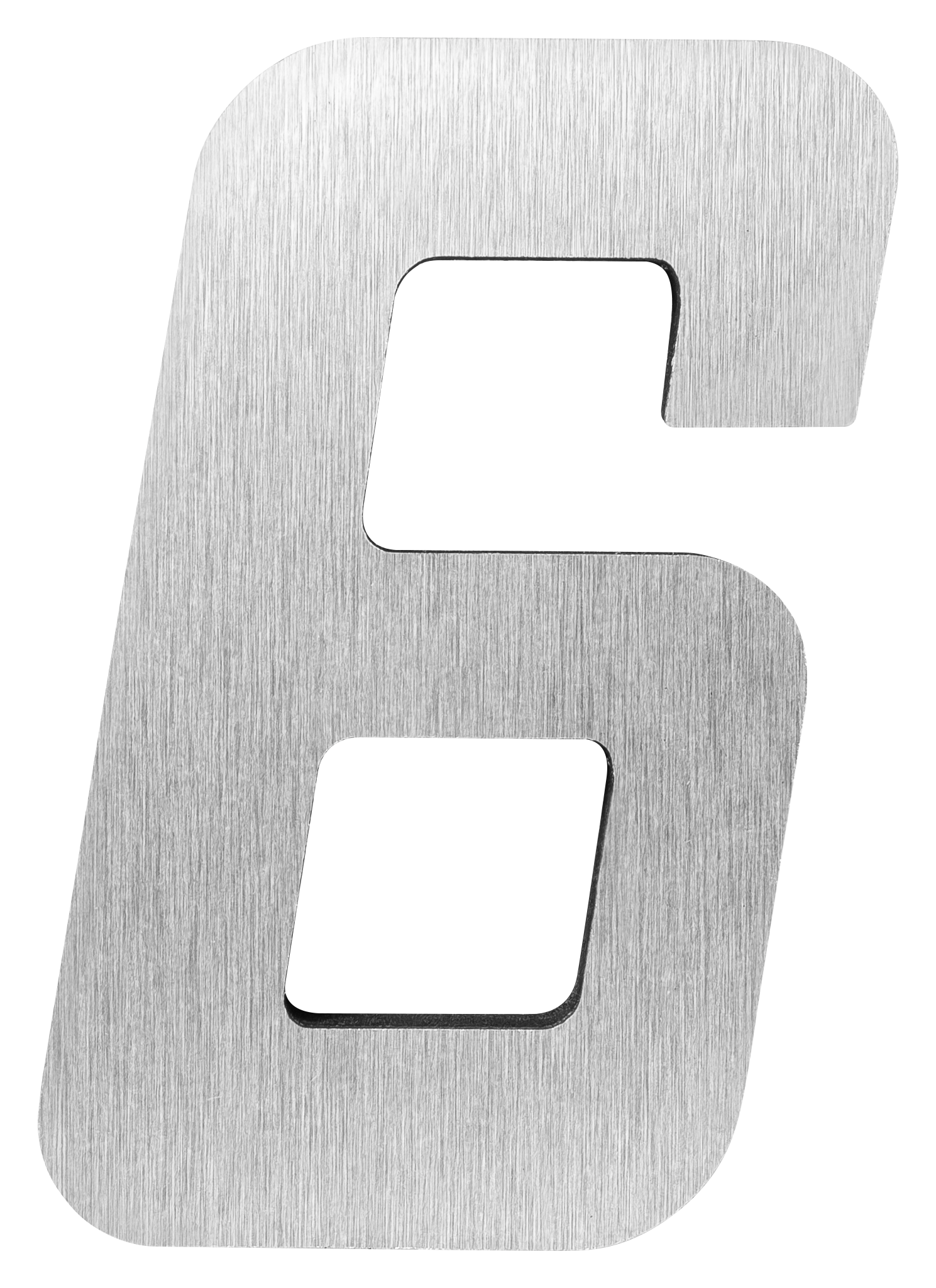 Número residencial fabricado en aluminio compuesto (ACM), apto para uso en interiores o exteriores. Cuenta con cinta adhesiva doble faz transparente para fijación directa en la pared, sin necesidad de perforaciones ni herramientas para la instalación.