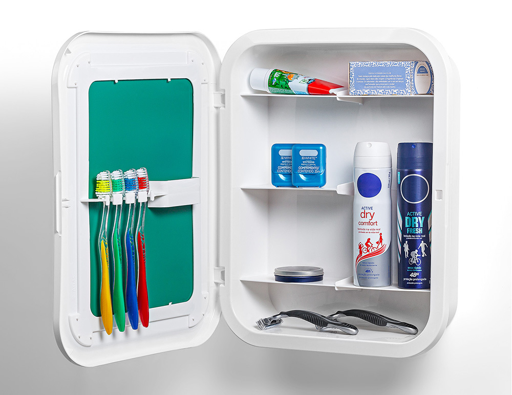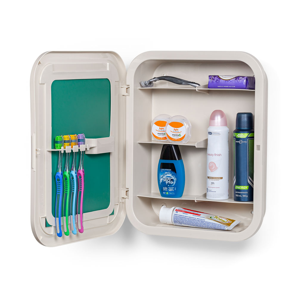Armário pequeno com a porta e o corpo confeccionado em polipropileno copolímero. Espelho de prata que garante resistência e durabilidade a umidade. Indicado para banheiro e vestiários, desenho moderno e discreto. Pode ser instalado com porta para direita ou esquerda. Limpar com pano levemente umedecido com água e pano seco.