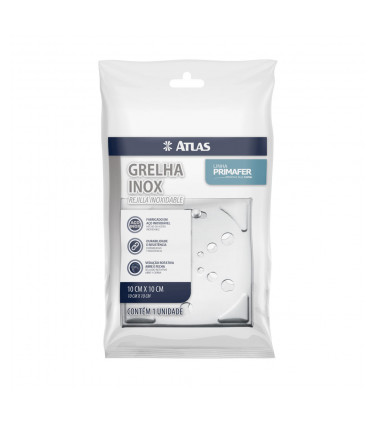 Grelhas com 15 x 15 cm. Fabricado em aço inox 430. Possui mecanismo abre e fecha que impede a entrada de insetos. Suporta até 120 Kg.